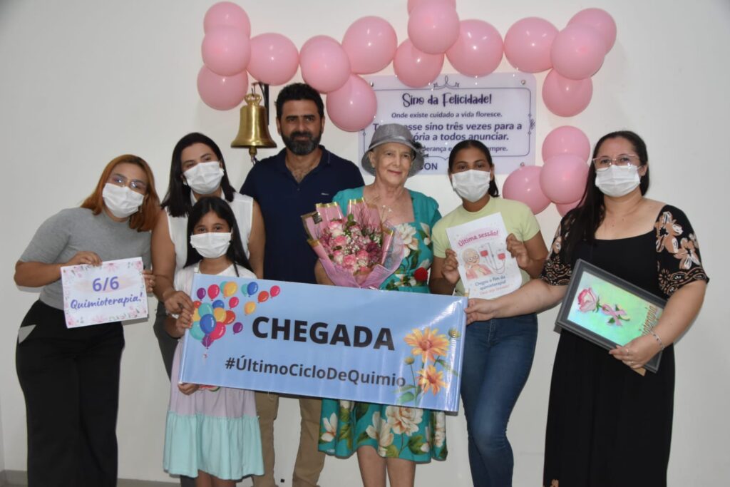 Além do acolhimento da equipe de saúde, Rosenildes celebrou a cura ao tocar o sino e receber o carinho da família, que preparou uma homenagem com buquê de flores e a decoração do carro em tons de rosa, marcando o momento com emoção e gratidão.